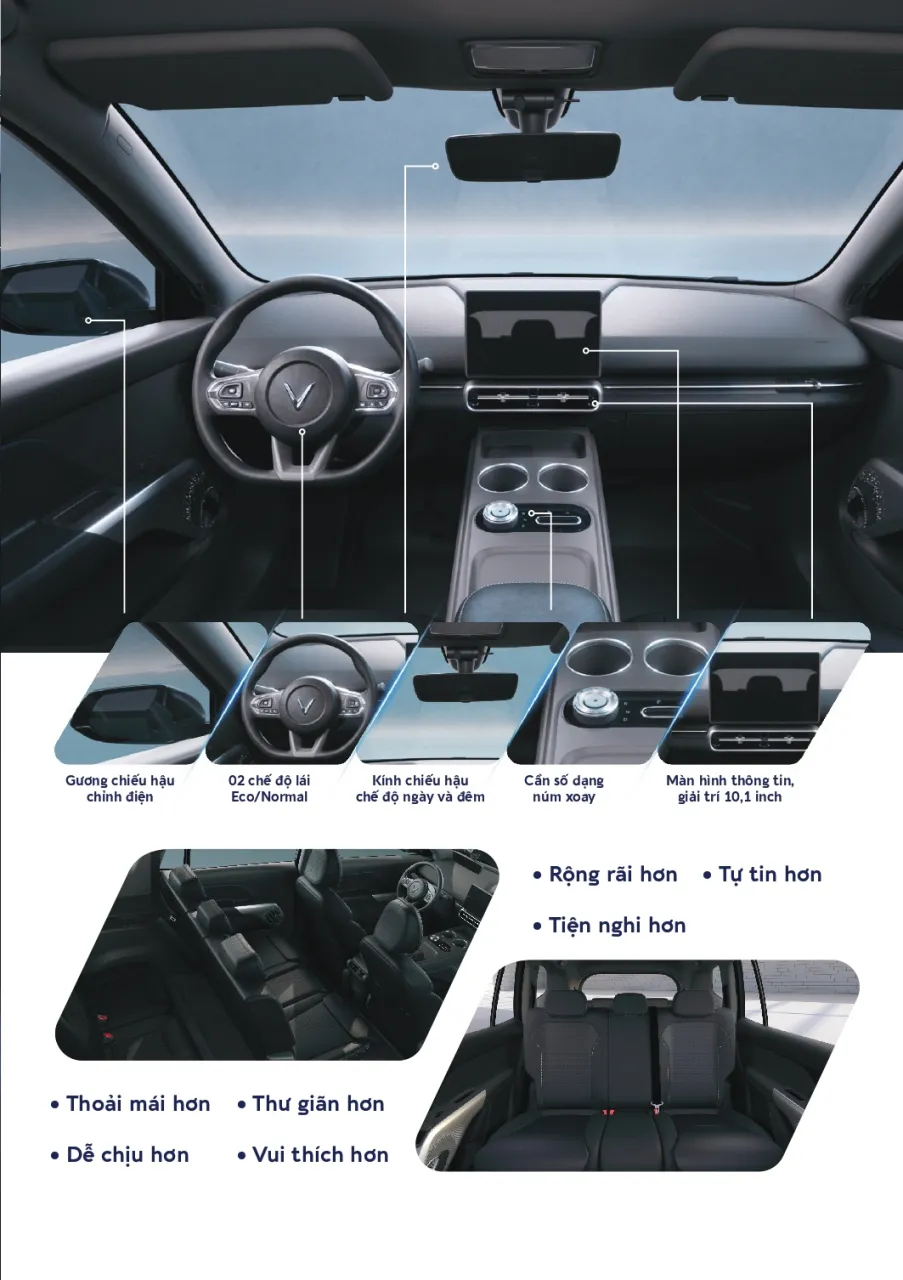 Theo đó, các phím bấm vật lý và chi tiết thừa đã được lược bỏ đến mức tối đa. Khu vực táp-lô thoáng đãng với chỉ 1 màn hình trung tâm kích thước lớn, đặt nổi. Ngay phía dưới bố trí cửa gió điều hòa dạng nằm ngang, viền kim loại xung quanh. Tiếp đến là bảng điều khiển trung tâm tích hợp núm xoay chuyển số, 2 khay đựng ly và giá để điện thoại.