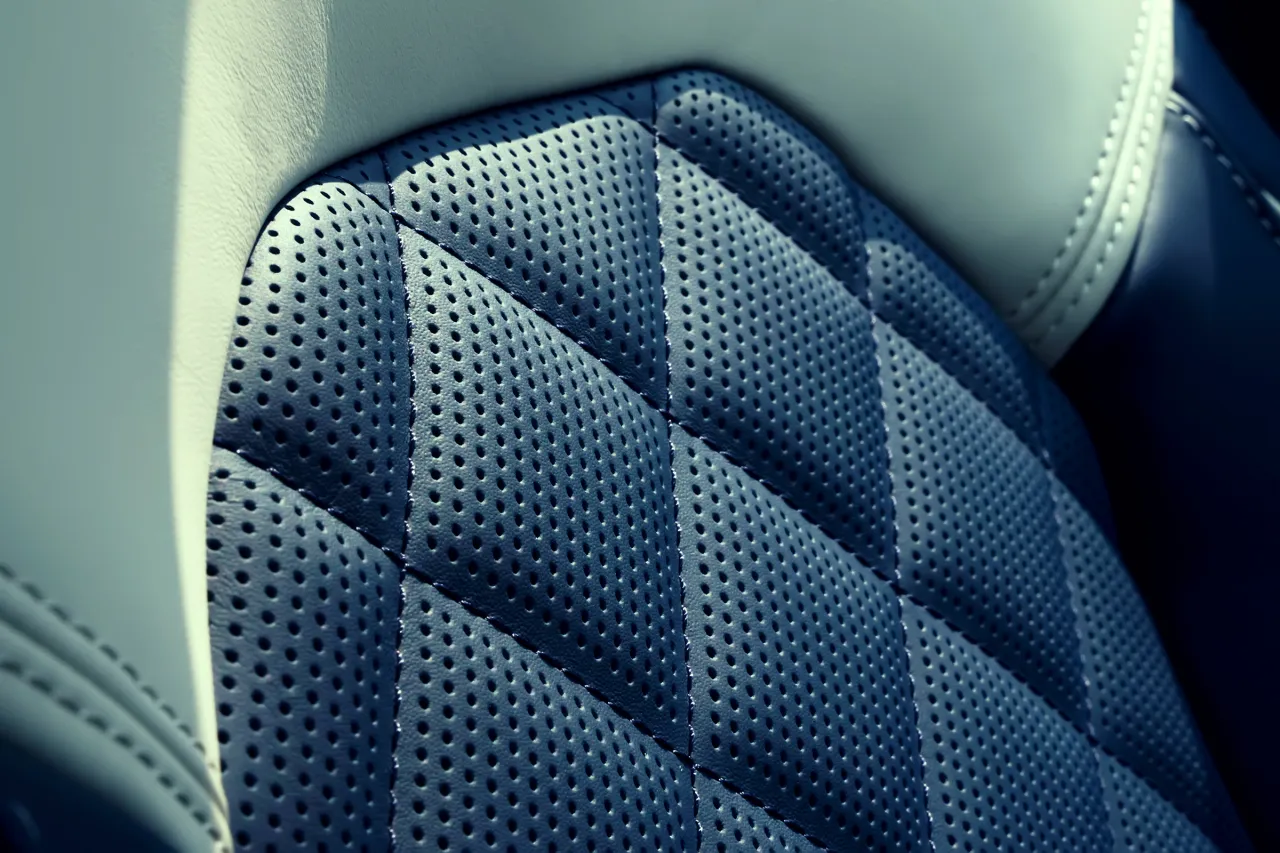 Ghế xe VinFast VF 9 bọc da cao cấp với cách phối màu thời thượng, có tính năng chỉnh điện tiện lợi. Logo thương hiệu được dập nổi ở phần tựa đầu trở thành điểm chấm phá lý thú cho khu vực trong xe.