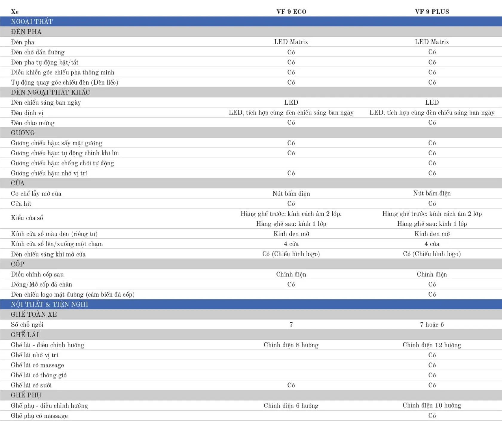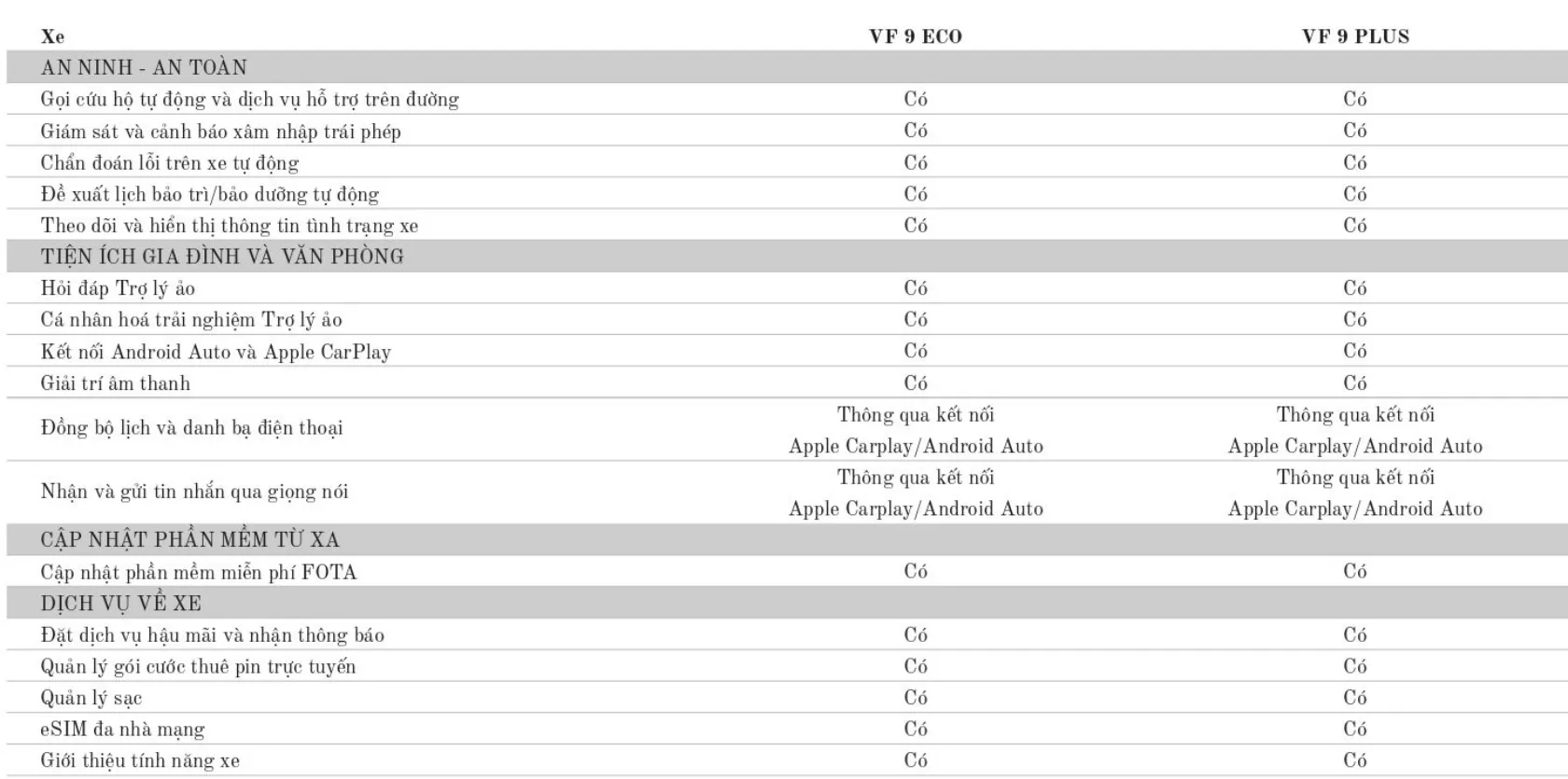 Tương tự VF8, VF9 cũng sở hữu tới 11 túi khí và hướng tới mục tiêu đạt tiêu chuẩn 5 sao ASEAN NCAP, 5 sao EURO NCAP và 5 sao NHTSA. Danh sách an toàn cụ thể của VF9 sẽ được công bố trong thời gian tới, trước mắt mẫu SUV này gây ấn tượng với nhiều công nghệ hỗ trợ lái nổi bật như: